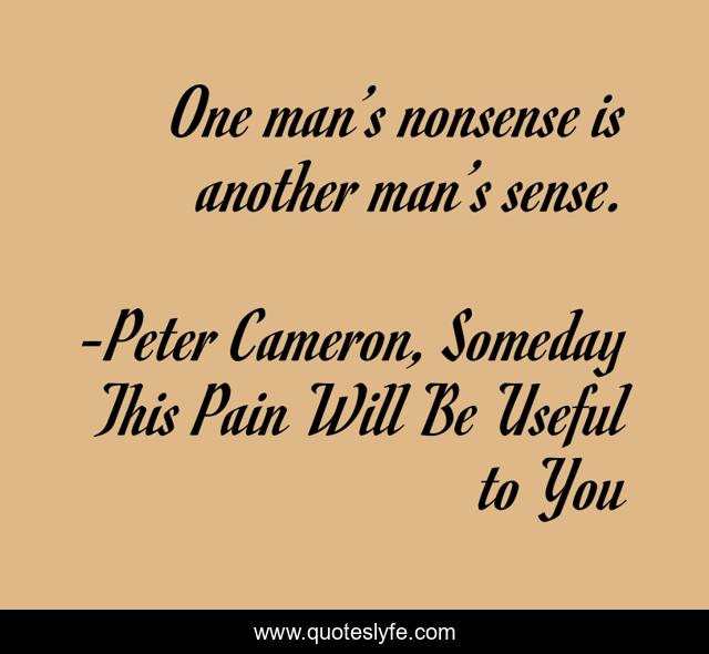 "Peter Cameron, Someday This Pain Will Be Useful to You Quotes." Quoteslyfe.com, 2025. Sun. 07 Dec. 2025. <https://www.quoteslyfe.com/quote/One-man-s-nonsense-is-another-man-181115>.