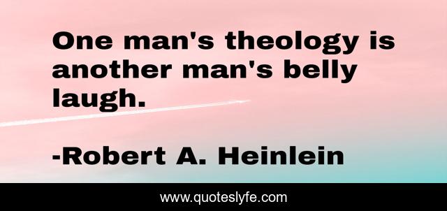 This page presents the quote "One man's theology is another man's belly laugh.". Author of this quote is Robert A. Heinlein. .