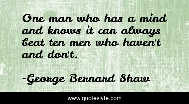 This page presents the quote "One man who has a mind and knows it can always beat ten men who haven't and don't.". Author of this quote is George Bernard Shaw. .