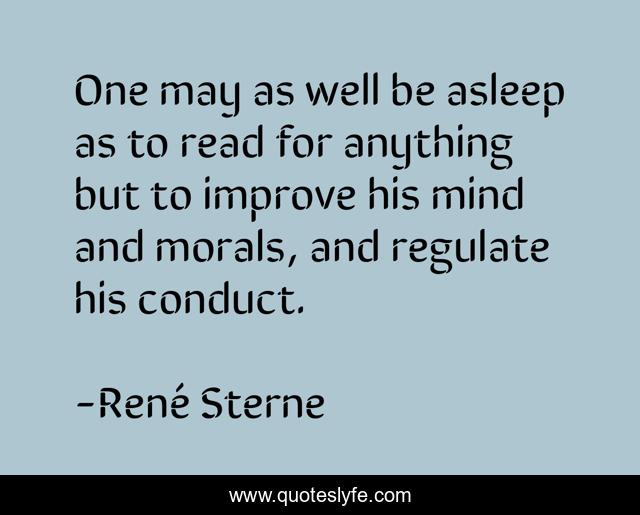 This page presents the quote "One may as well be asleep as to read for anything but to improve his mind and morals, and regulate his conduct.". Author of this quote is René Sterne. This quote is about moral-stories-for-kids, short-moral-stories, morals, mind-improvement,.