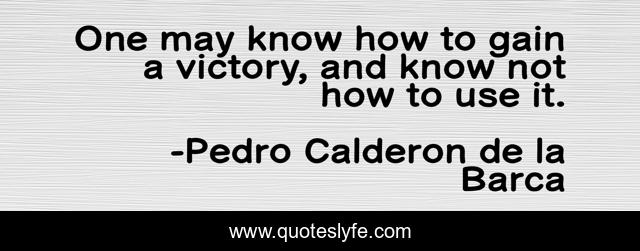 This page presents the quote "One may know how to gain a victory, and know not how to use it.". Author of this quote is Pedro Calderon de la Barca. This quote is about may, victory,.