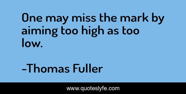 This page presents the quote "One may miss the mark by aiming too high as too low.". Author of this quote is Thomas Fuller. This quote is about high, may, mark,.