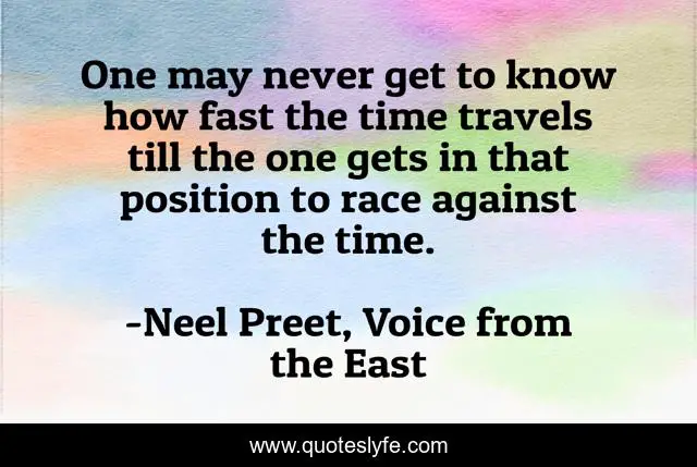 This page presents the quote "One may never get to know how fast the time travels till the one gets in that position to race against the time.". Author of this quote is Neel Preet, Voice from the East. This quote is about poem, life, time-passing, life-changing, life-lesson, time-travel, poetry, book, books,.