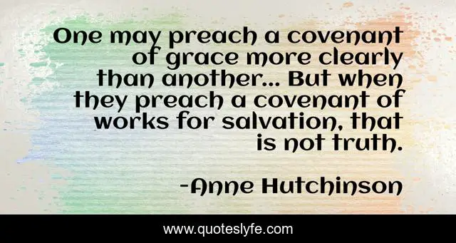 This page presents the quote "One may preach a covenant of grace more clearly than another... But when they preach a covenant of works for salvation, that is not truth.". Author of this quote is Anne Hutchinson. This quote is about may, salvation, grace,.