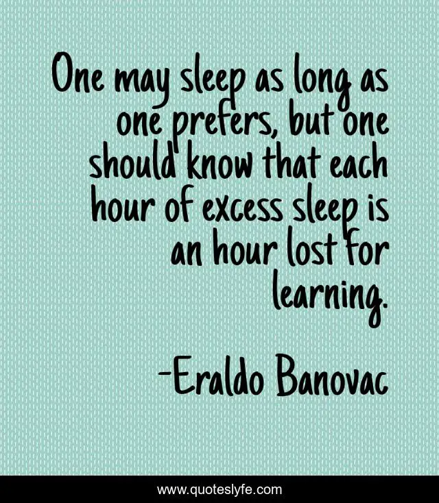 This page presents the quote "One may sleep as long as one prefers, but one should know that each hour of excess sleep is an hour lost for learning.". Author of this quote is Eraldo Banovac. This quote is about learning, sleeping,.