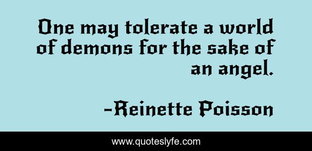 This page presents the quote "One may tolerate a world of demons for the sake of an angel.". Author of this quote is Reinette Poisson. This quote is about angels, demons,.