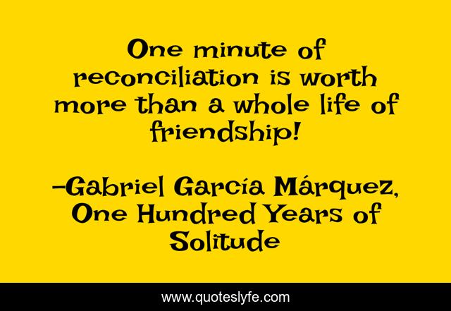 This page presents the quote "One minute of reconciliation is worth more than a whole life of friendship!". Author of this quote is Gabriel García Márquez, One Hundred Years of Solitude. .