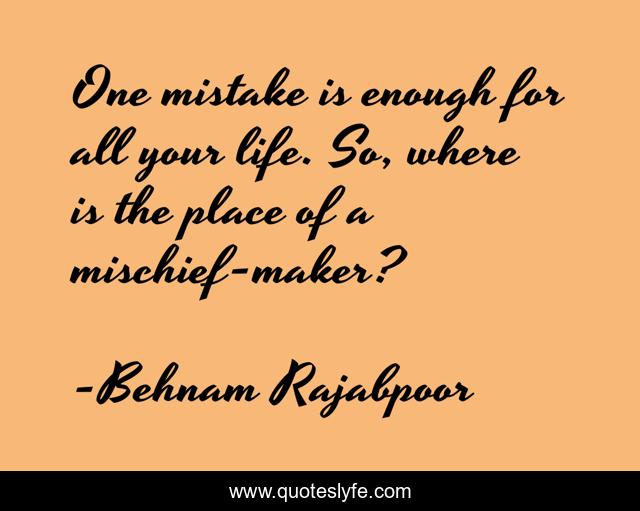 This page presents the quote "One mistake is enough for all your life. So, where is the place of a mischief-maker?". Author of this quote is Behnam Rajabpoor. This quote is about success-self-improvement, success,.