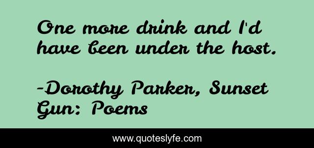 This page presents the quote "One more drink and I'd have been under the host.". Author of this quote is Dorothy Parker, Sunset Gun: Poems. This quote is about drinking, drink, yoel-goldenberg,.