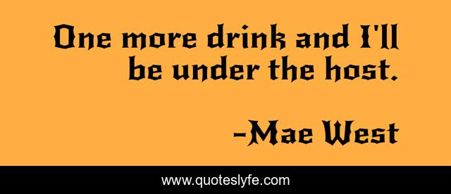 This page presents the quote "One more drink and I'll be under the host.". Author of this quote is Mae West. This quote is about drinking, alcohol, drunkenness,.