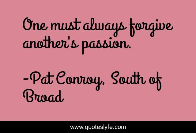 "Pat Conroy, South of Broad Quotes." Quoteslyfe.com, 2025. Fri. 05 Dec. 2025. <https://www.quoteslyfe.com/quote/One-must-always-forgive-another-s-passion-181393>.