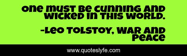 This page presents the quote "One must be cunning and wicked in this world.". Author of this quote is Leo Tolstoy, War and Peace. This quote is about world, cunning, wicked,.