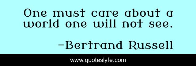 This page presents the quote "One must care about a world one will not see.". Author of this quote is Bertrand Russell. .