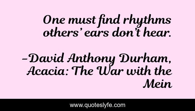 "David Anthony Durham, Acacia: The War with the Mein Quotes." Quoteslyfe.com, 2025. Sat. 06 Dec. 2025. <https://www.quoteslyfe.com/quote/One-must-find-rhythms-others-ears-don-156828>.
