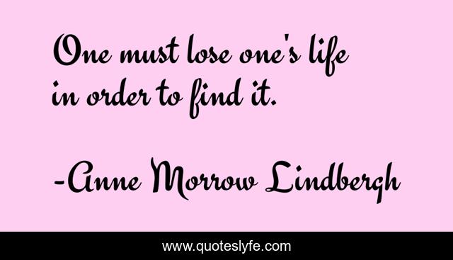 This page presents the quote "One must lose one's life in order to find it.". Author of this quote is Anne Morrow Lindbergh. This quote is about positive, confidence, creating, change,.