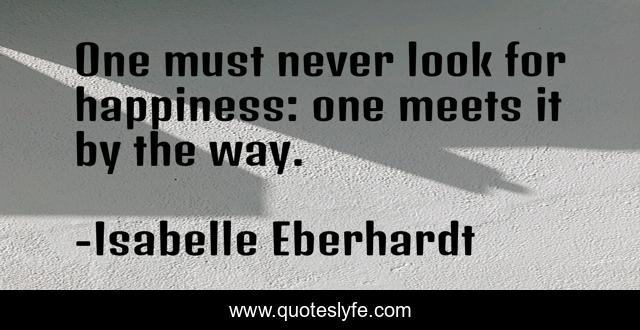 This page presents the quote "One must never look for happiness: one meets it by the way.". Author of this quote is Isabelle Eberhardt. .