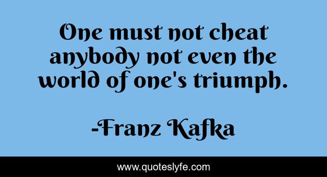 This page presents the quote "One must not cheat anybody not even the world of one's triumph.". Author of this quote is Franz Kafka. .