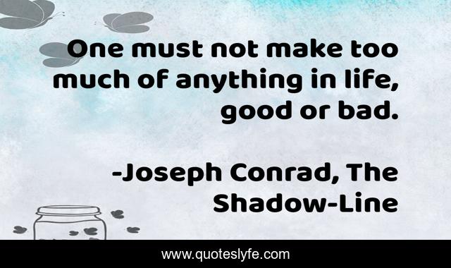 This page presents the quote "One must not make too much of anything in life, good or bad.". Author of this quote is Joseph Conrad, The Shadow-Line. This quote is about bad, good, life, experience, wisdom,.