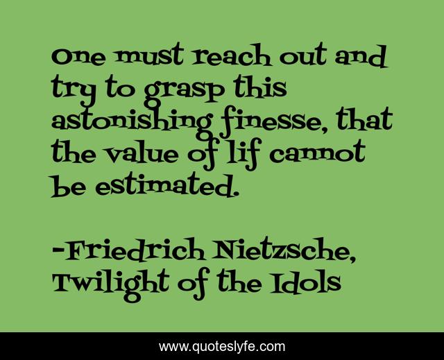 This page presents the quote "One must reach out and try to grasp this astonishing finesse, that the value of lif cannot be estimated.". Author of this quote is Friedrich Nietzsche, Twilight of the Idols. .