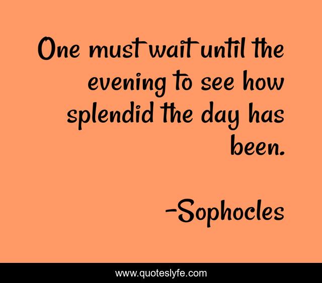"Sophocles Quotes." Quoteslyfe.com, 2025. Fri. 05 Dec. 2025. <https://www.quoteslyfe.com/quote/One-must-wait-until-the-evening-to-7327>.