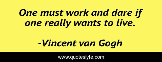 This page presents the quote "One must work and dare if one really wants to live.". Author of this quote is Vincent van Gogh. This quote is about enthusiasm, artistic, inspirational,.
