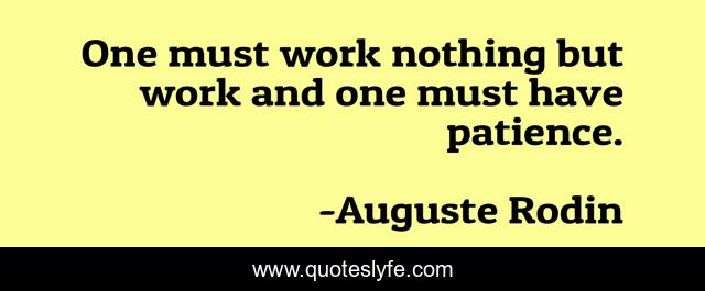 This page presents the quote "One must work nothing but work and one must have patience.". Author of this quote is Auguste Rodin. This quote is about art, artist,.