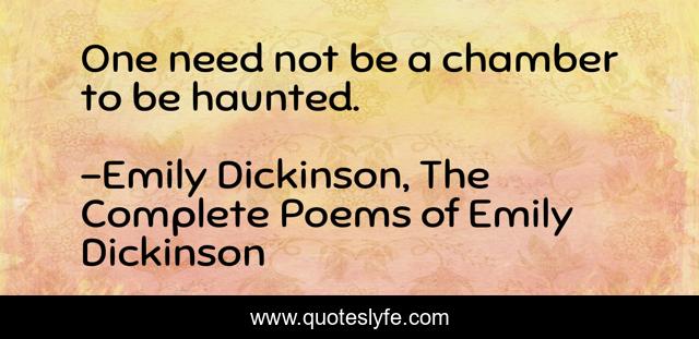 This page presents the quote "One need not be a chamber to be haunted.". Author of this quote is Emily Dickinson, The Complete Poems of Emily Dickinson. This quote is about sadness, darkness, poetry,.