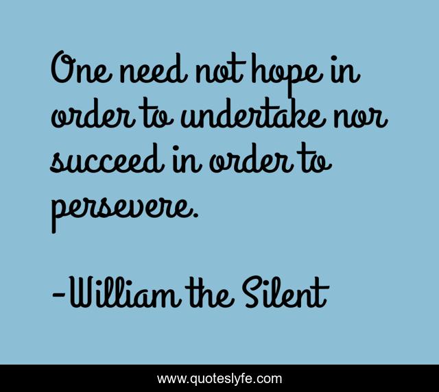 This page presents the quote "One need not hope in order to undertake nor succeed in order to persevere.". Author of this quote is William the Silent. .