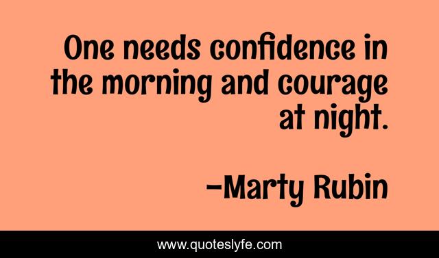 This page presents the quote "One needs confidence in the morning and courage at night.". Author of this quote is Marty Rubin. This quote is about youth, age, courage, confidence,.