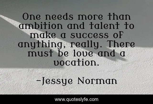 This page presents the quote "One needs more than ambition and talent to make a success of anything, really. There must be love and a vocation.". Author of this quote is Jessye Norman. This quote is about love, talent, affection, ambition,.