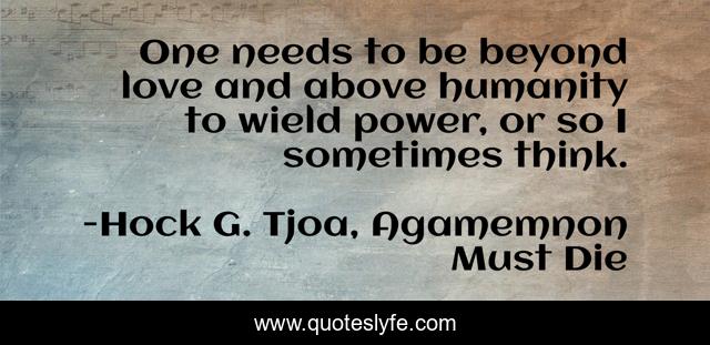 This page presents the quote "One needs to be beyond love and above humanity to wield power, or so I sometimes think.". Author of this quote is Hock G. Tjoa, Agamemnon Must Die. This quote is about humanity, power,.