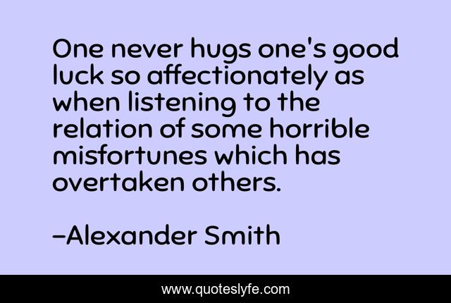 This page presents the quote "One never hugs one's good luck so affectionately as when listening to the relation of some horrible misfortunes which has overtaken others.". Author of this quote is Alexander Smith. .