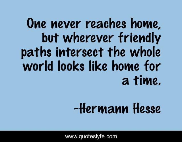 This page presents the quote "One never reaches home, but wherever friendly paths intersect the whole world looks like home for a time.". Author of this quote is Hermann Hesse. This quote is about world, time, paths,.