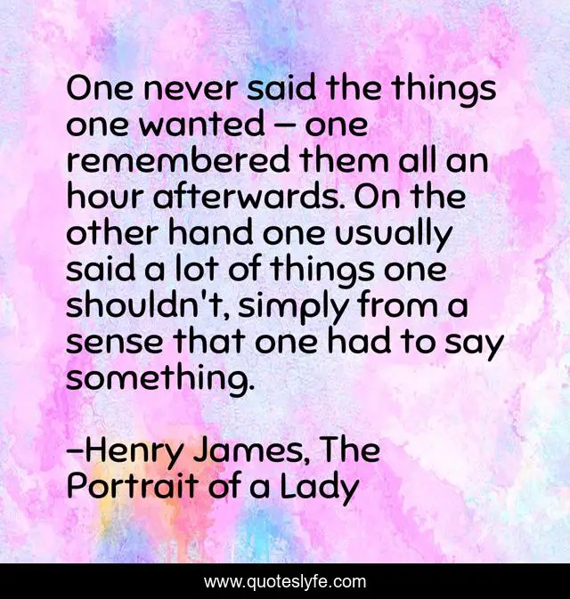 "Henry James, The Portrait of a Lady Quotes." Quoteslyfe.com, 2025. Sat. 06 Dec. 2025. <https://www.quoteslyfe.com/quote/One-never-said-the-things-one-wanted-258093>.