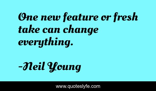 This page presents the quote "One new feature or fresh take can change everything.". Author of this quote is Neil Young. This quote is about everything, new, fresh,.