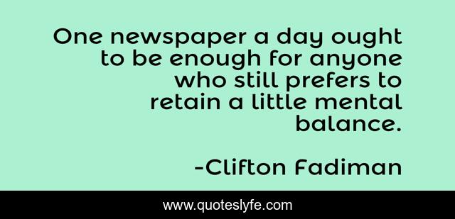 This page presents the quote "One newspaper a day ought to be enough for anyone who still prefers to retain a little mental balance.". Author of this quote is Clifton Fadiman. This quote is about newspapers, journalism,.