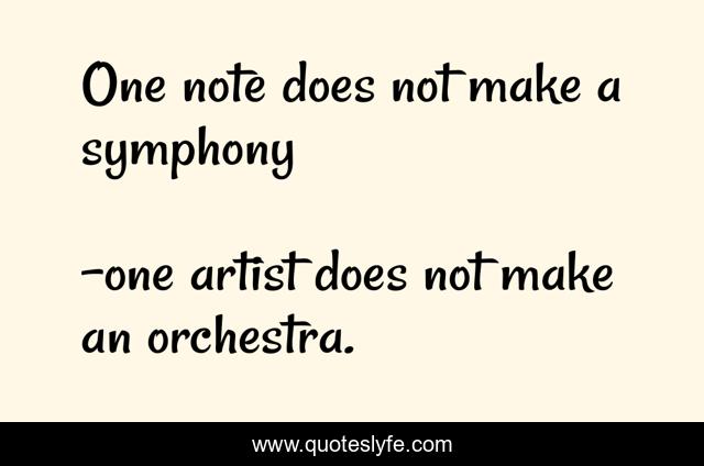This page presents the quote "One note does not make a symphony". Author of this quote is one artist does not make an orchestra.. .