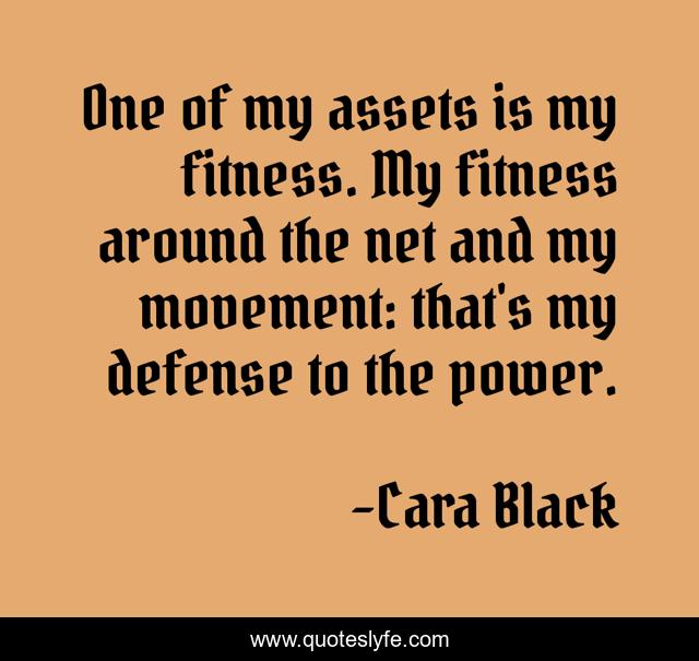 This page presents the quote "One of my assets is my fitness. My fitness around the net and my movement: that's my defense to the power.". Author of this quote is Cara Black. This quote is about assets, power, movement,.