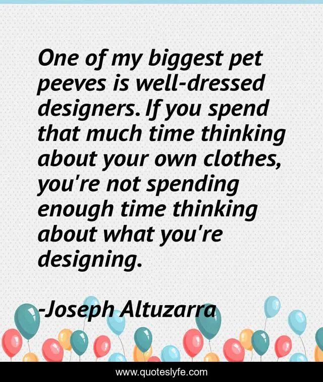This page presents the quote "One of my biggest pet peeves is well-dressed designers. If you spend that much time thinking about your own clothes, you're not spending enough time thinking about what you're designing.". Author of this quote is Joseph Altuzarra. This quote is about thinking, time, clothes,.