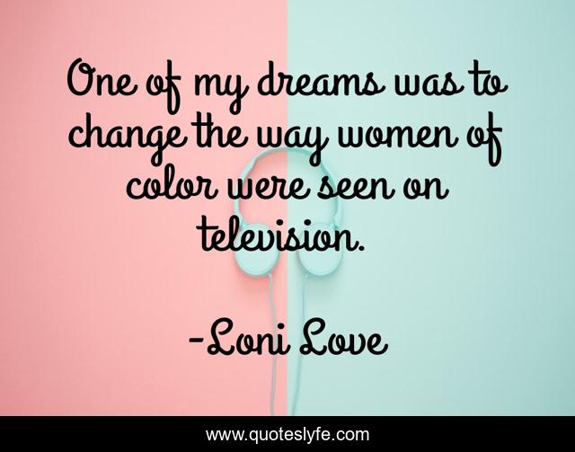 This page presents the quote "One of my dreams was to change the way women of color were seen on television.". Author of this quote is Loni Love. This quote is about color, change, women,.