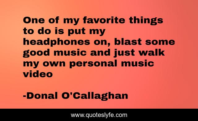 This page presents the quote "One of my favorite things to do is put my headphones on, blast some good music and just walk my own personal music video". Author of this quote is Donal O'Callaghan. .