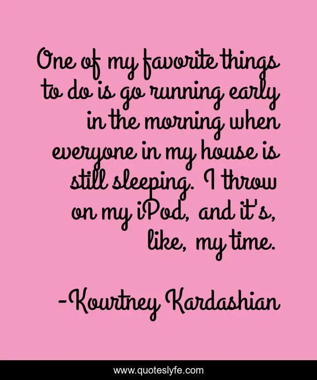 This page presents the quote "One of my favorite things to do is go running early in the morning when everyone in my house is still sleeping. I throw on my iPod, and it's, like, my time.". Author of this quote is Kourtney Kardashian. This quote is about early, favorite, time,.