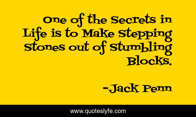 This page presents the quote "One of the Secrets in Life is to Make Stepping Stones out of Stumbling Blocks.". Author of this quote is Jack Penn. This quote is about positive, confidence, motivational, optimistic,.