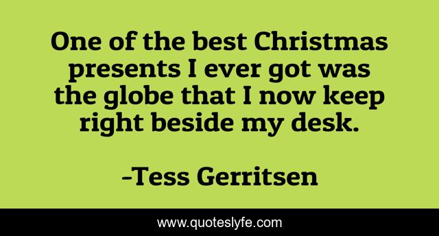 This page presents the quote "One of the best Christmas presents I ever got was the globe that I now keep right beside my desk.". Author of this quote is Tess Gerritsen. This quote is about now, right, best,.