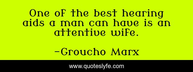 This page presents the quote "One of the best hearing aids a man can have is an attentive wife.". Author of this quote is Groucho Marx. .