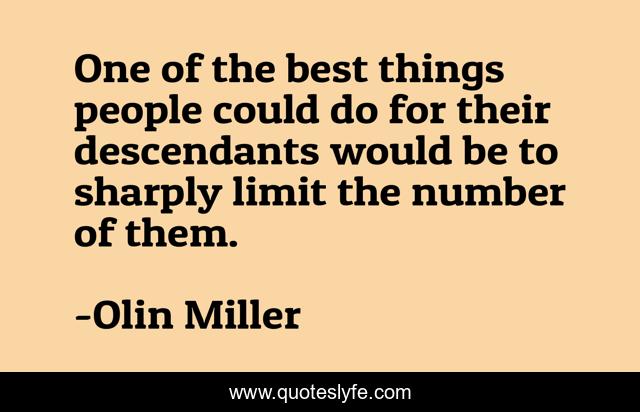 This page presents the quote "One of the best things people could do for their descendants would be to sharply limit the number of them.". Author of this quote is Olin Miller. .
