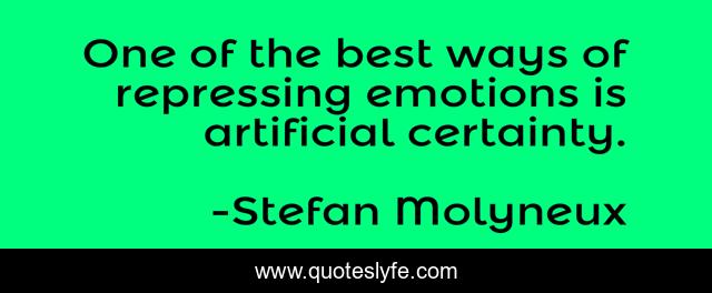 This page presents the quote "One of the best ways of repressing emotions is artificial certainty.". Author of this quote is Stefan Molyneux. This quote is about child-abuse, psychology, self-knowledge, abuse-survivors, childhood-trauma, therapy, trauma, self-esteem,.