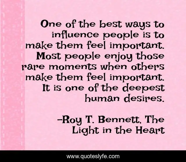 One of the best ways to influence people is to make them feel important. Most people enjoy those rare moments when others make them feel important. It is one of the deepest human desires.