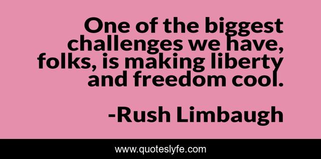 This page presents the quote "One of the biggest challenges we have, folks, is making liberty and freedom cool.". Author of this quote is Rush Limbaugh. This quote is about challenges, freedom, liberty,.