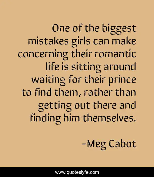 This page presents the quote "One of the biggest mistakes girls can make concerning their romantic life is sitting around waiting for their prince to find them, rather than getting out there and finding him themselves.". Author of this quote is Meg Cabot. This quote is about girls, love, affection,.